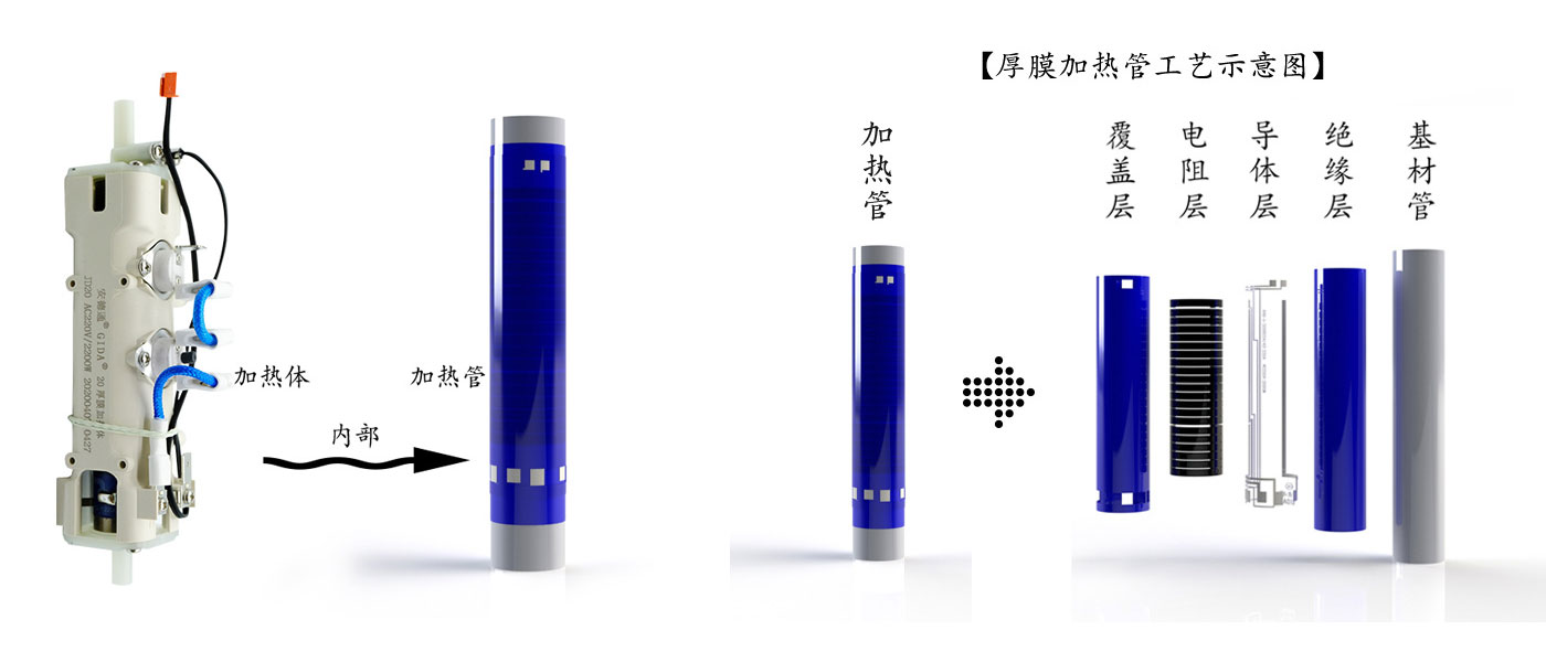 源于歐美的厚膜加熱技術,是采用絲網印刷技術在基材上印刷絕緣介質、電阻、導體、保護釉等材料,通過高溫燒結而成,九十年代末,美國DUPONT、德國HERAEUS等巨頭公司開發出全新大功率基板厚膜電熱元件,由于其高強度、高壽命的性能和安全環保、運用靈活的特點很快在工業以及家用電熱產品領域普及,被稱為電熱元件領域的工業革命。